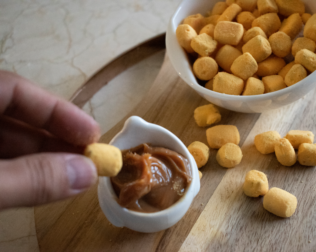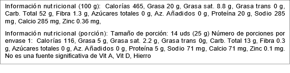 Cuajada fresca, almidón de sagú, quinua, amaranto, ghee (mantequilla clarificada), huevo, semillas de chía, sal.