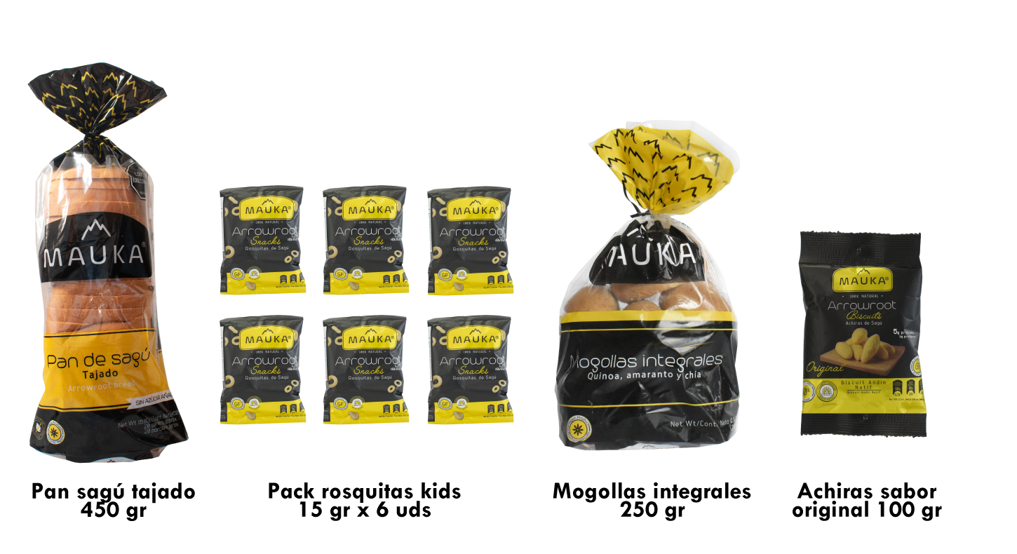 | Presentación: | pan sagú, rosquitas con vitaminas (x 6 unidades), mogollas integrales (quinoa, amaranto, chía) y achiras |